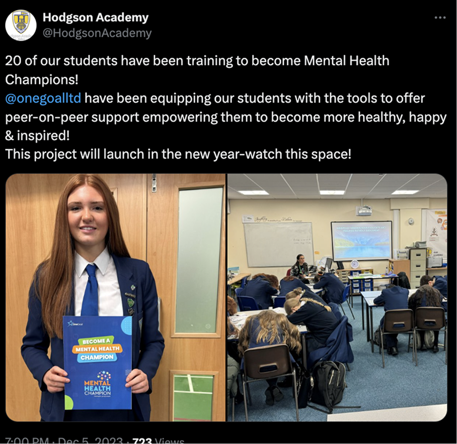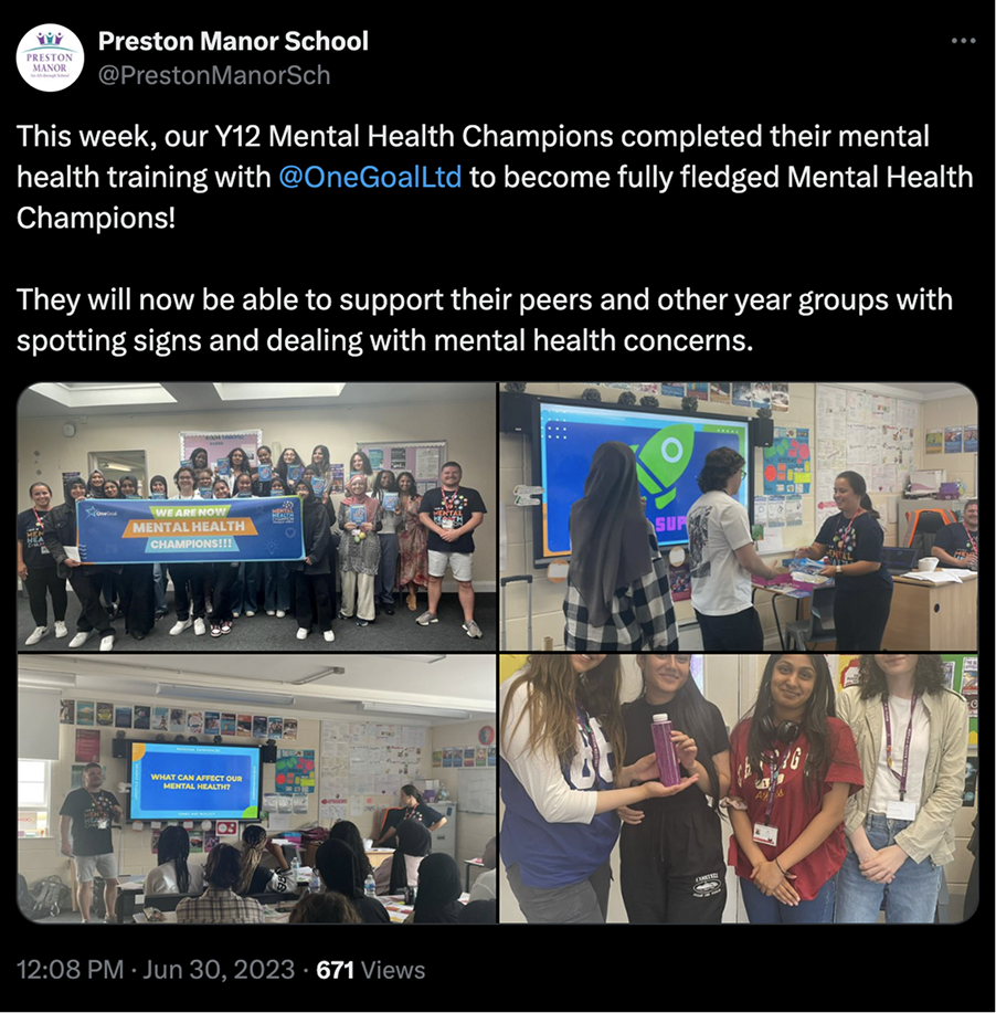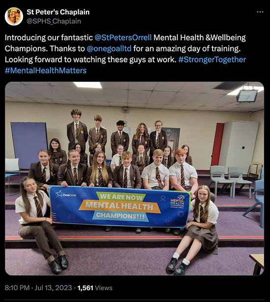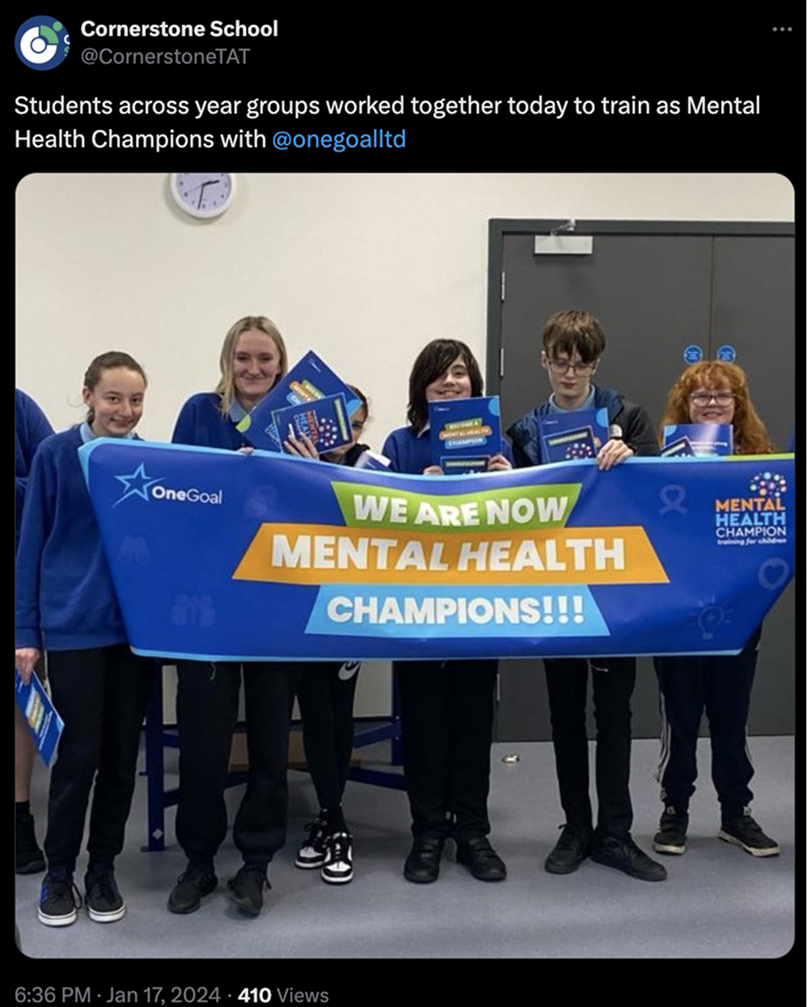 Pupils now have more knowledge and Confidence about mental health. The training has empowered them to support others throughout school.