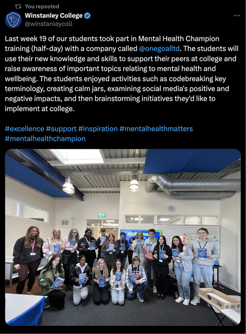Our mental health champions now have the ability to support fellow students in maintaining positive, healthy mental health habbits!